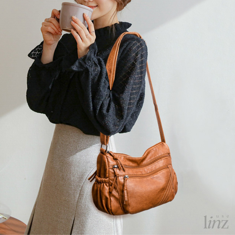 Com o tamanho perfeito para te acompanhar todos os dias, a Bolsa Feminina Frindone é feita em couro macio, com várias repartições de fechamento em zíper.