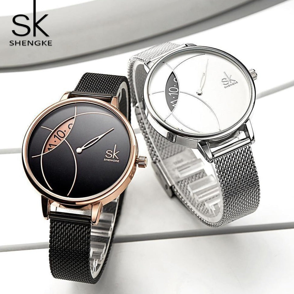 Relógio Feminino Shengke À Prova D'água Pulseira em Aço Inoxidável